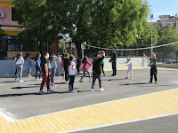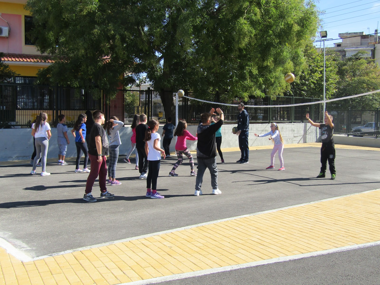 Ο κ. Νίκος Καραγκιόζης, προπονητής Ακαδημιών Βόλεϊ, έδειξε στα παιδιά τις βασικές κινήσεις του αθλήματος και οργάνωσε δράσεις με περιεχόμενο τα σημαντικότερα βήματα των αθλητών του βόλεϊ (πάσα, υποδοχή, καρφί). Απ’ το νέο γήπεδο του βόλεϊ πέρασαν όλα τα παιδιά των Γ, Δ, Ε και ΣΤ τάξεων, που έδειξαν ενθουσιασμό και ζήλο στις ασκήσεις επίδειξης.